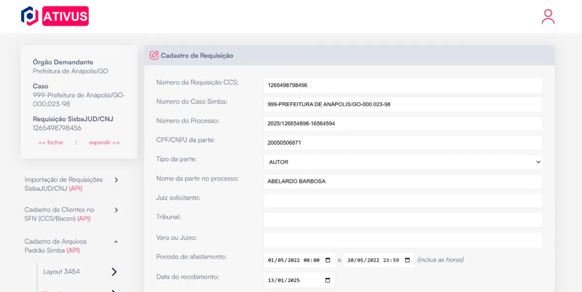 A ferramenta ATIVUS – REGULATÓRIOS é a única plataforma que unifica todos os canais de requisição — do SisbaJud ao ofício em papel — em uma esteira de atendimento centralizada, segura e auditável. Automatizamos todo o processo, da leitura e triagem do documento à validação jurídica e transmissão final dos arquivos, garantindo 100% de conformidade. Reduza o tempo de processamento de dias para minutos e libere sua equipe para focar em atividades de alto valor agregado.
